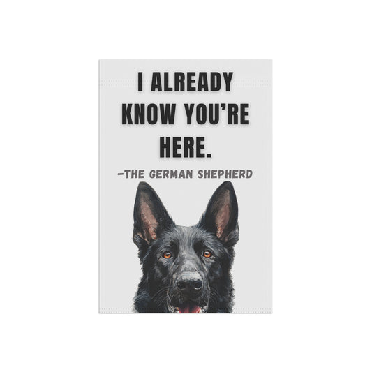 I Already Know You're Here Black GSD Garden Banner