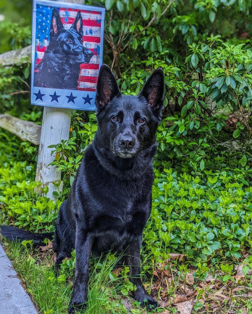 Beautiful Lexi posing next to our American Black GSD Garden banner. Give her a follow on Instagram: @4tlwalsh4