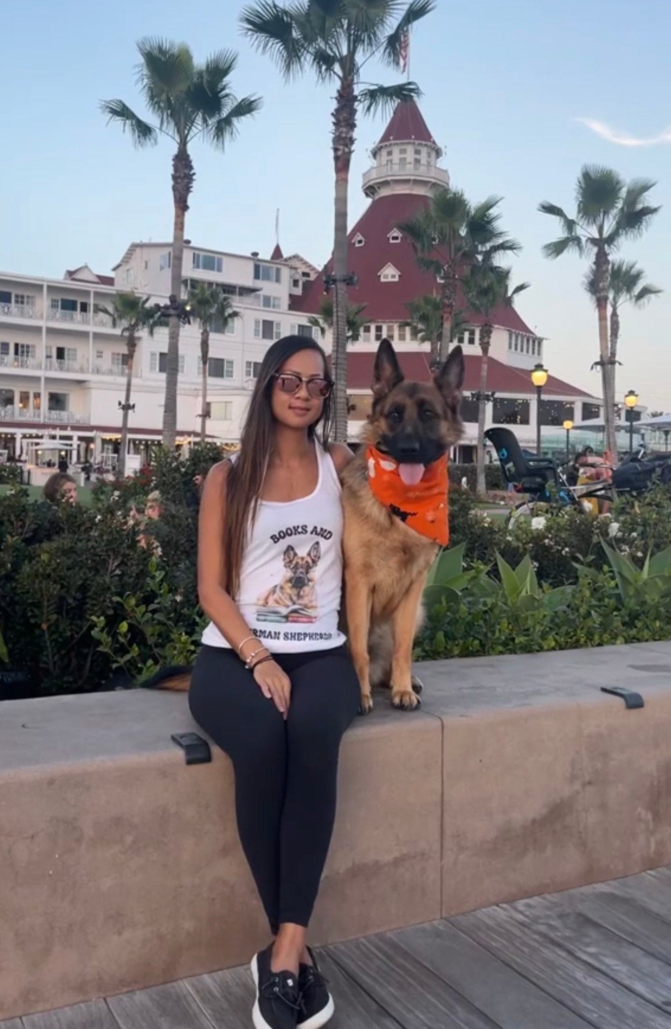 Lindsay is wearing our bestselling tank top with her handsome shepherd, Scout. Give them a follow on Tiktok: @scout.the.gsd
