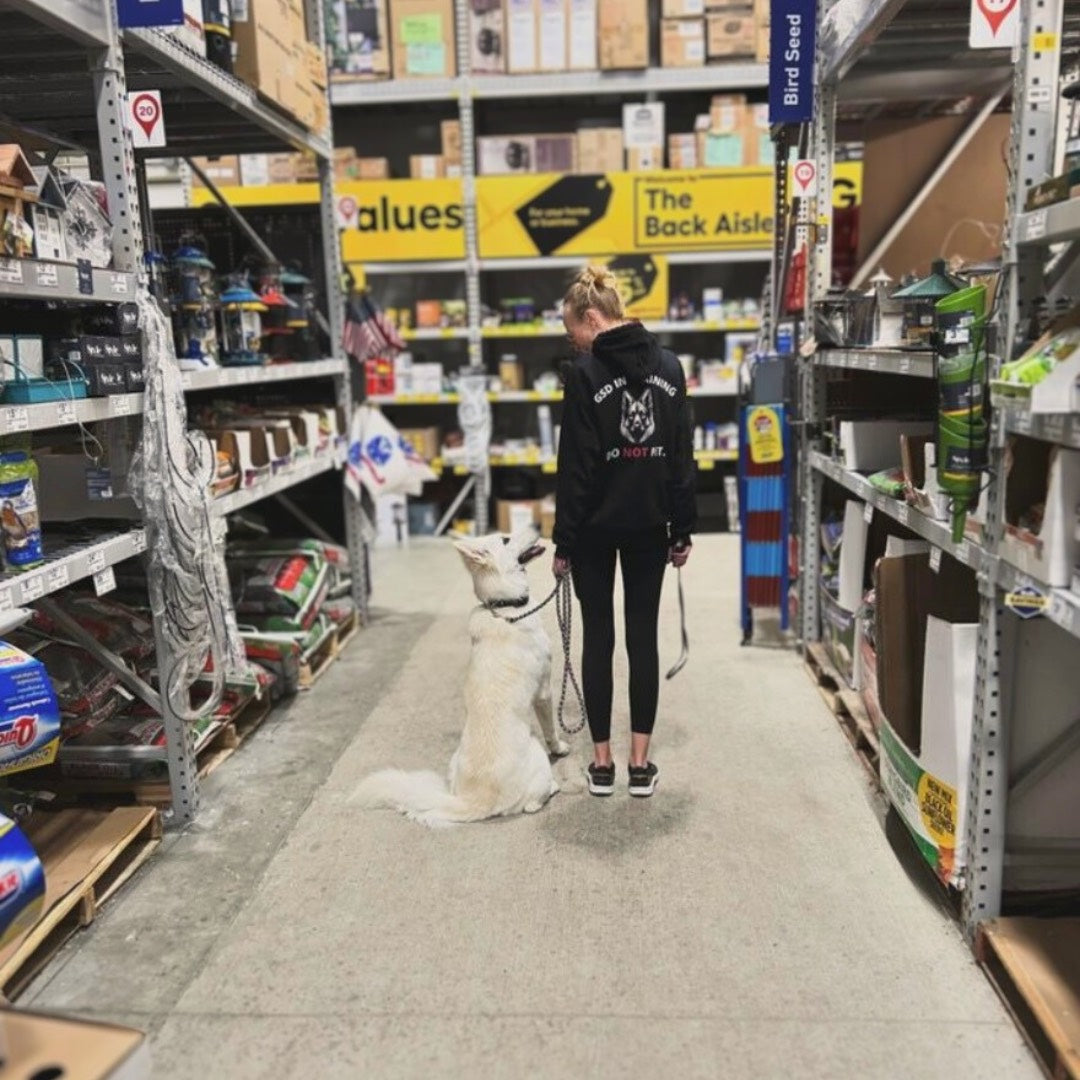Anna is wearing our 'GSD In Training' Hoodie while training her gorgeous shepherd, Saba. Follow their adventures on Instagram: @sabawhitegermanshepherd