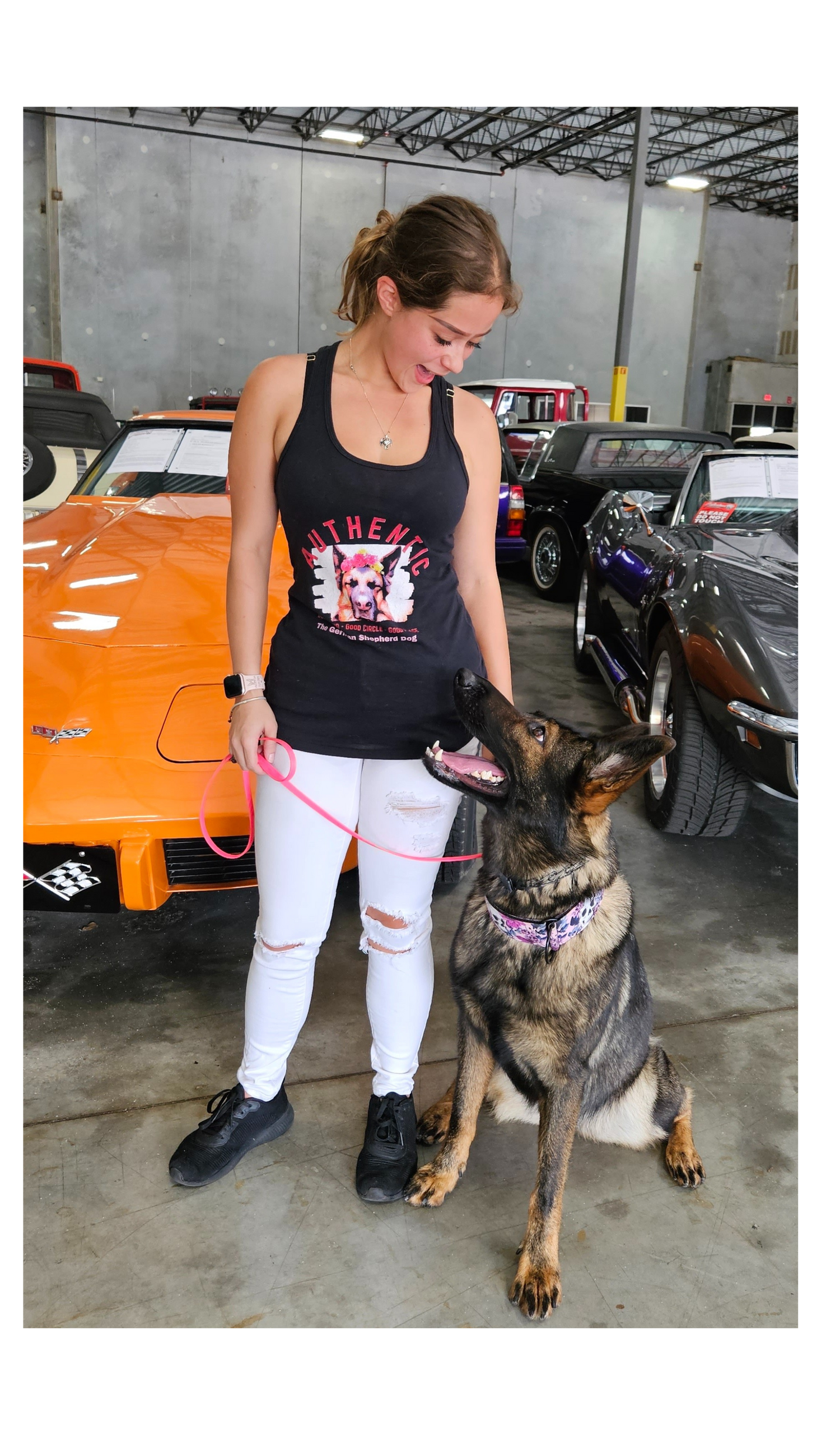 Kaiya is wearing our GSD watercolor tank top with our shepherds, Koah & Maui. Follow them on Tiktok: @koah_and_maui