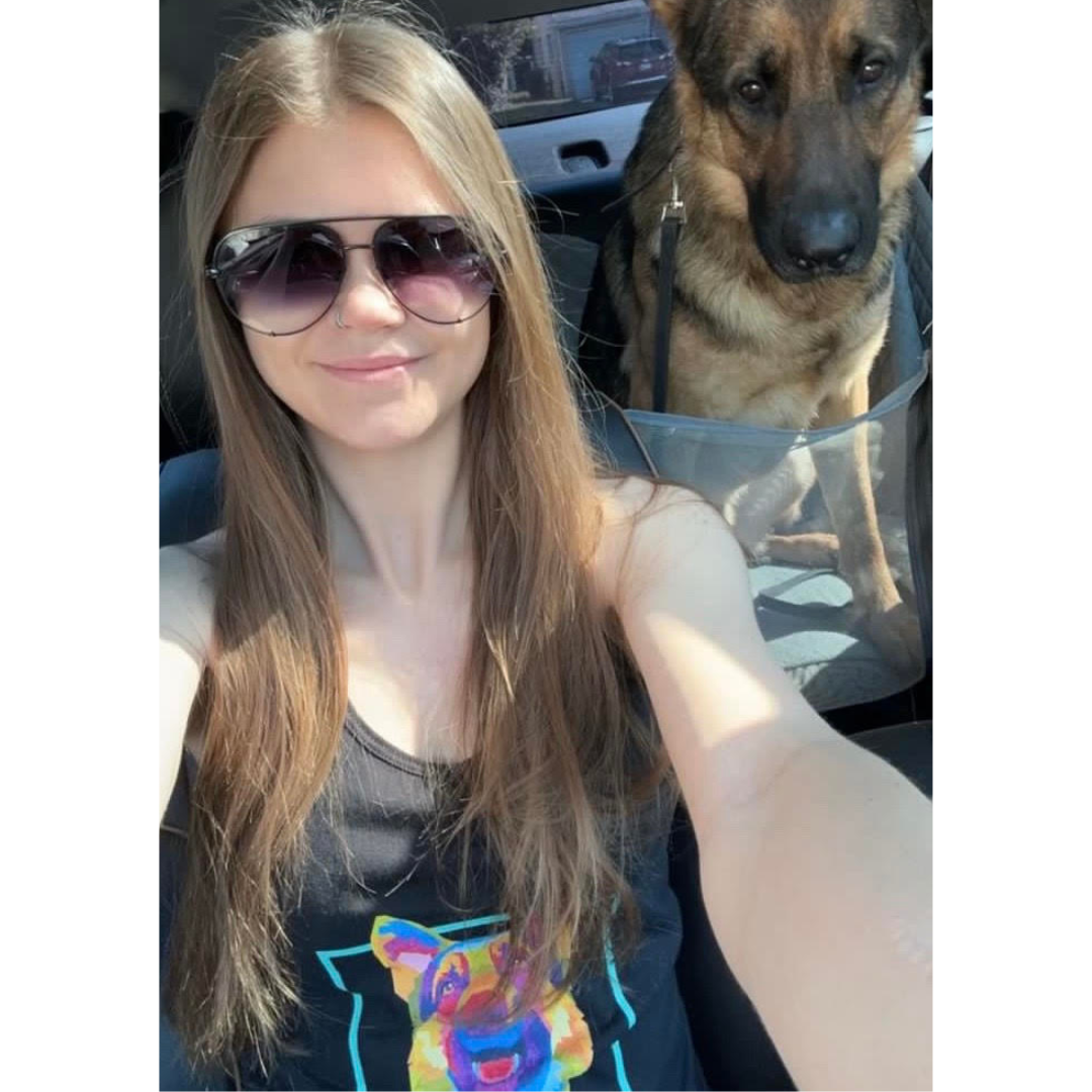 Kayla is wearing our 'GSD In Training' Tank top alongside her adorable shepherd, Valkyrie. Give them a follow on Instagram: @kayla_and_valkyrie