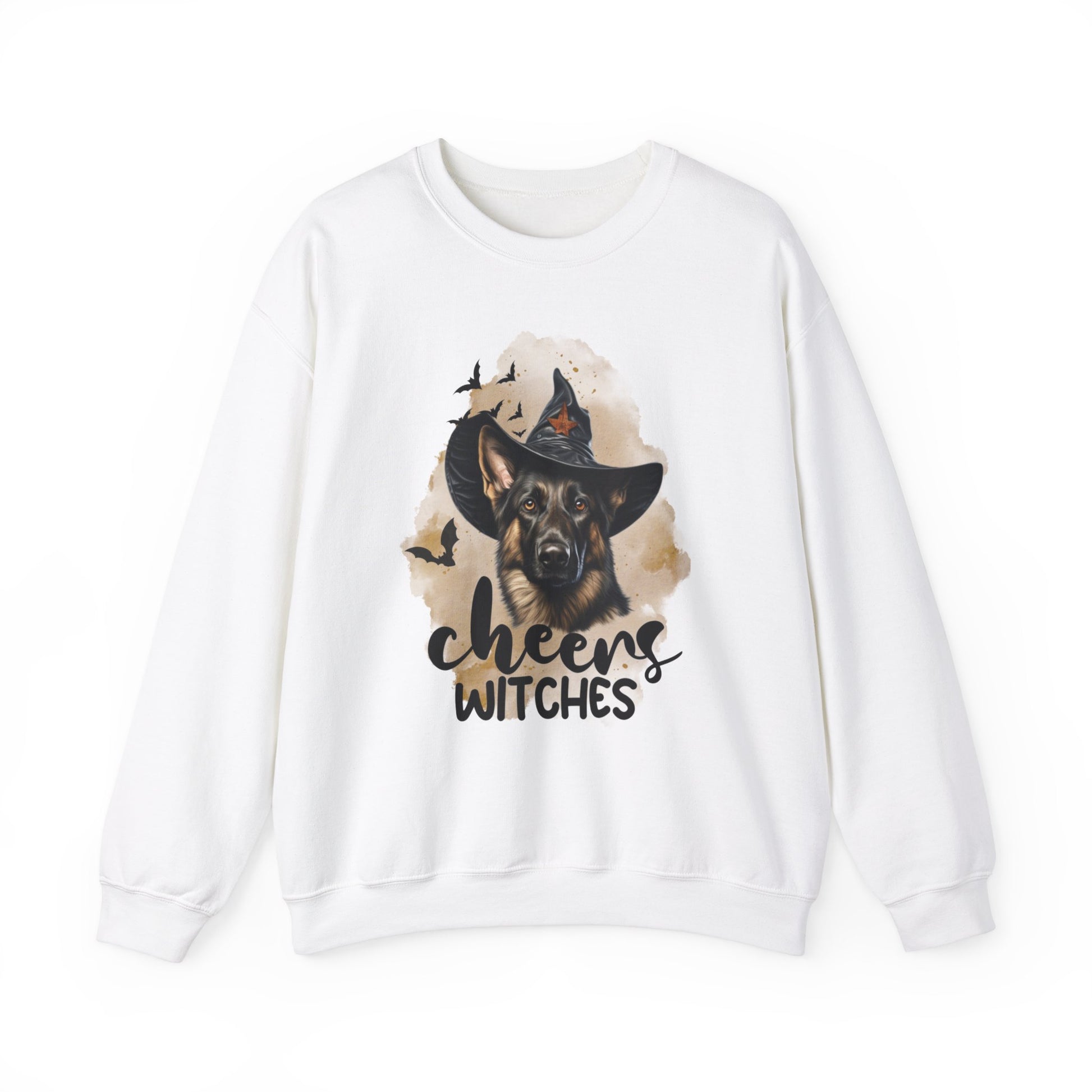 Embrace the Spooky Season with Our 'Cheers Witches' Sweatshirt featuring a Sable German Shepherd in a Witch Hat. Perfect for Halloween and super Fun! Whether you're going to a Halloween party or walking on a cool Fall day, this sweatshirt is perfect for you.