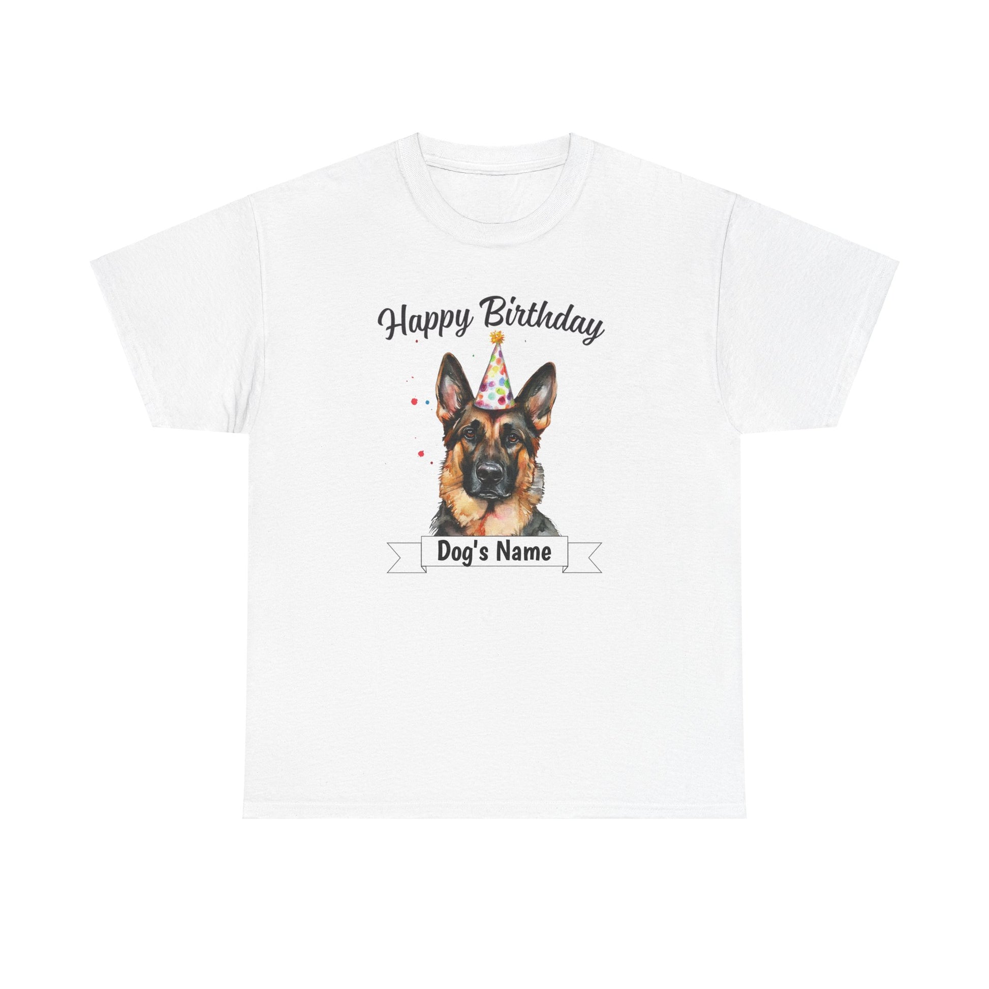 Celebrate your German Shepherd’s special day with our Custom Birthday Shirts! Featuring 'Happy Birthday [Dog's Name]' and a picture of your furry friend in a festive birthday hat, these shirts are perfect for making their big day extra special. Personalize it with your dog's name to create a one-of-a-kind keepsake that’s as unique as your GSD.