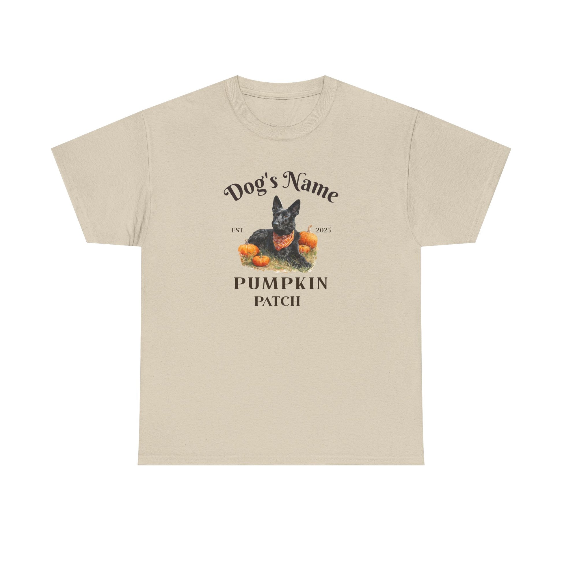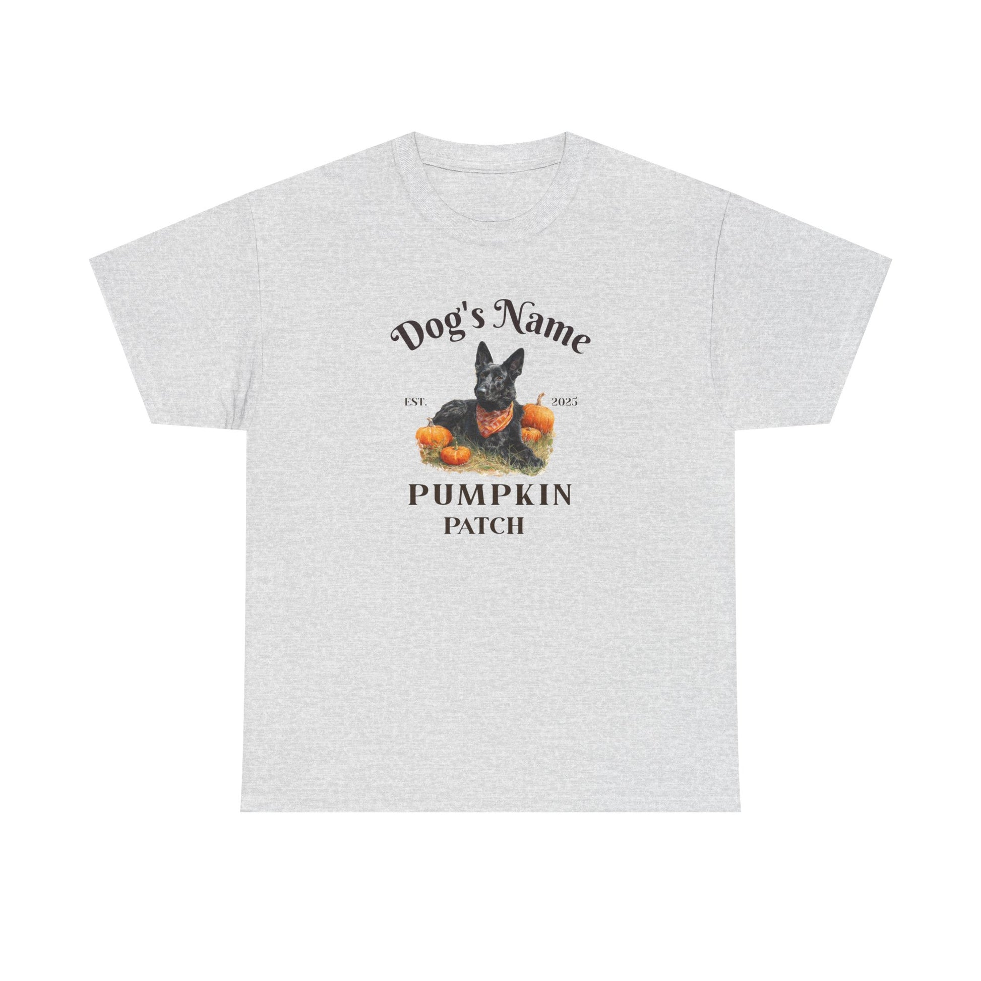 Celebrate Halloween in style with our Custom German Shepherd Pumpkin Patch shirt! This charming design features a lovable German Shepherd sitting proudly in a pumpkin patch, dressed in a cozy bandana. The shirt is personalized with your dog’s name and the phrase “[Dog’s Name] Pumpkin Patch – Est. 2025”, making it a truly one-of-a-kind piece