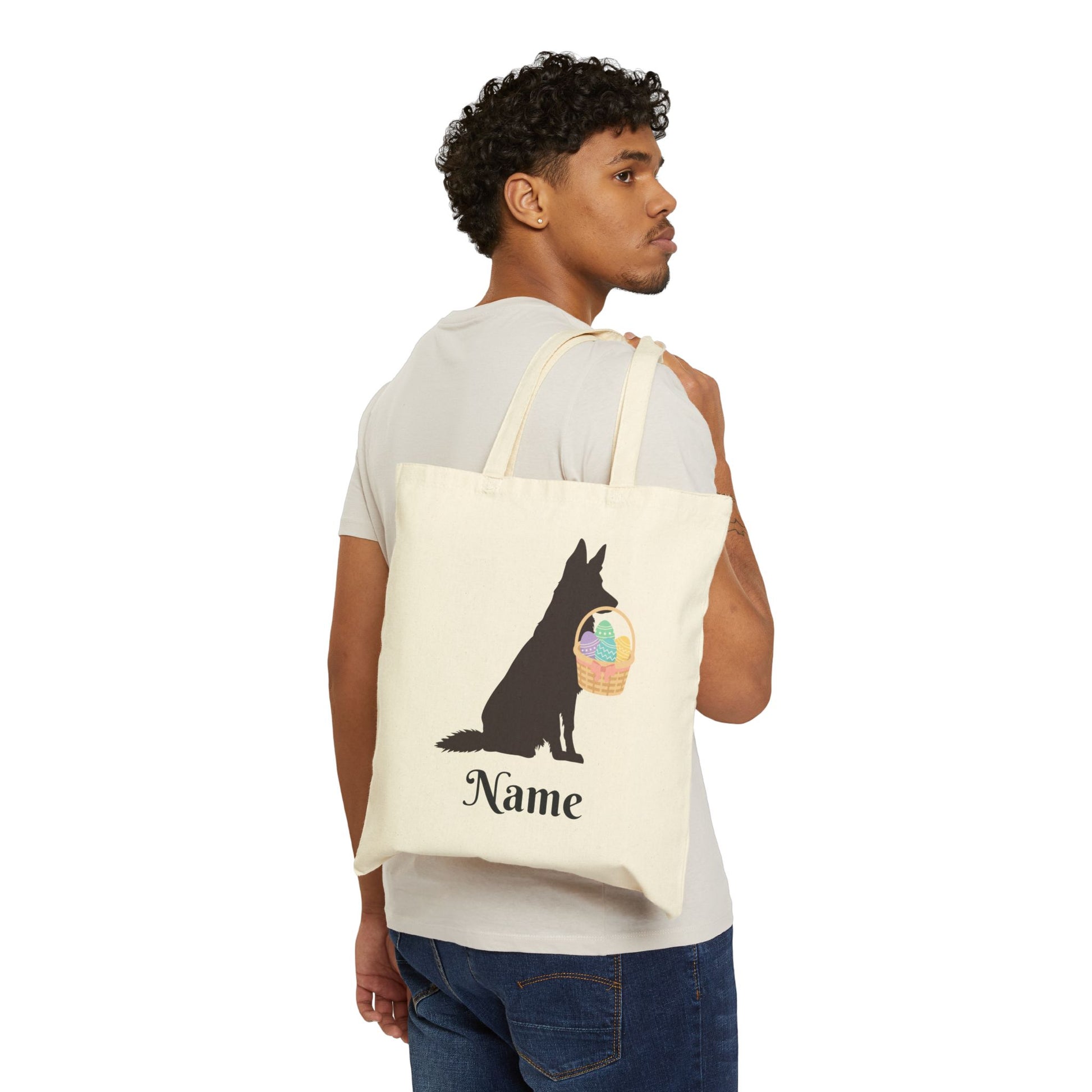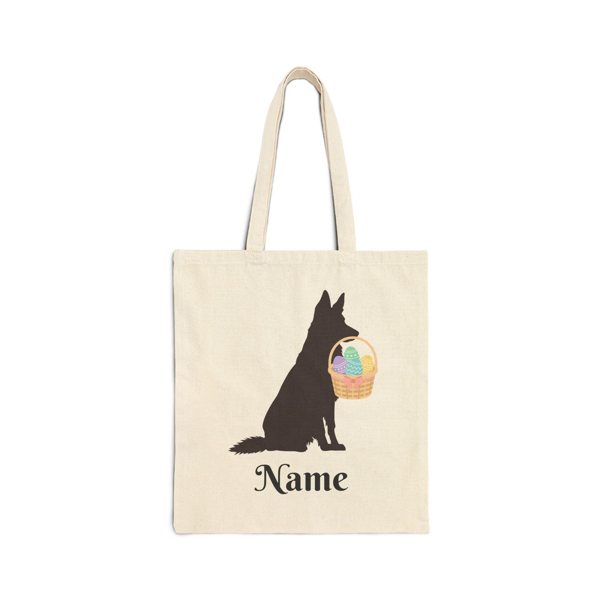 Carry your Easter spirit everywhere with our cute and simple German Shepherd Easter tote bag! Featuring a sleek German Shepherd silhouette holding a festive Easter basket, this charming design is perfect for spring. Made from 100% cotton, this durable and eco-friendly tote is ideal for shopping, errands, or carrying all your Easter goodies.