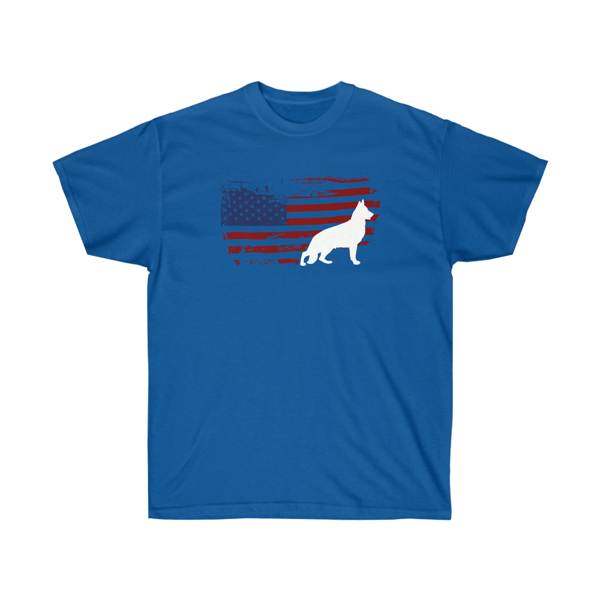 The American Pride German Shepherd dog T-Shirt is the perfect way to show your love and support for both the German Shepherd dog breed and the United States. Made with soft and comfortable cotton material, this unique dog t-shirt features a classic crew neckline and short sleeves. The design showcases a striking image of a German Shepherd dog with the American flag in the background, making it a great choice for any patriotic event or casual occasion. The t-shirt is available in a variety of sizes to ensure a comfortable and flattering fit for all.