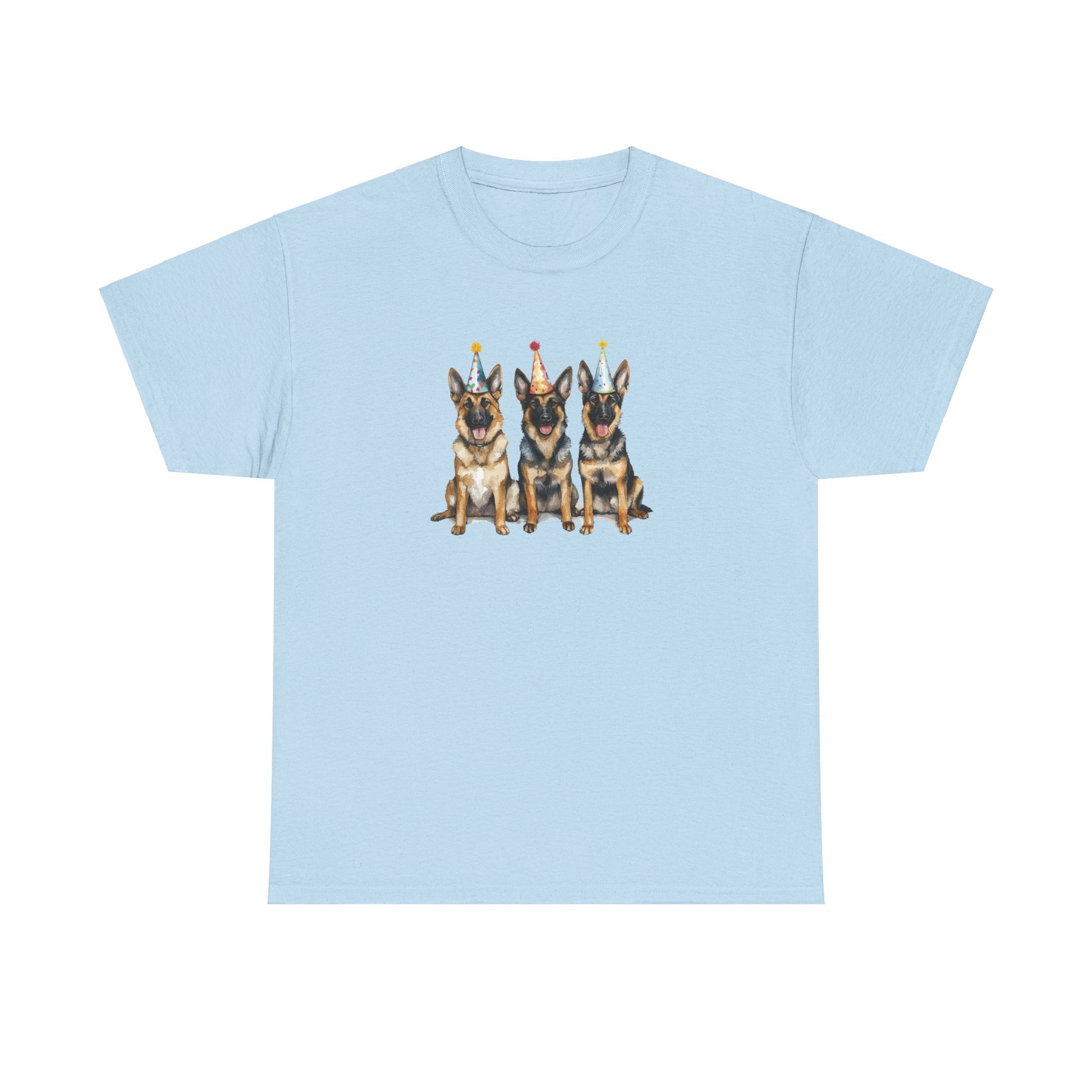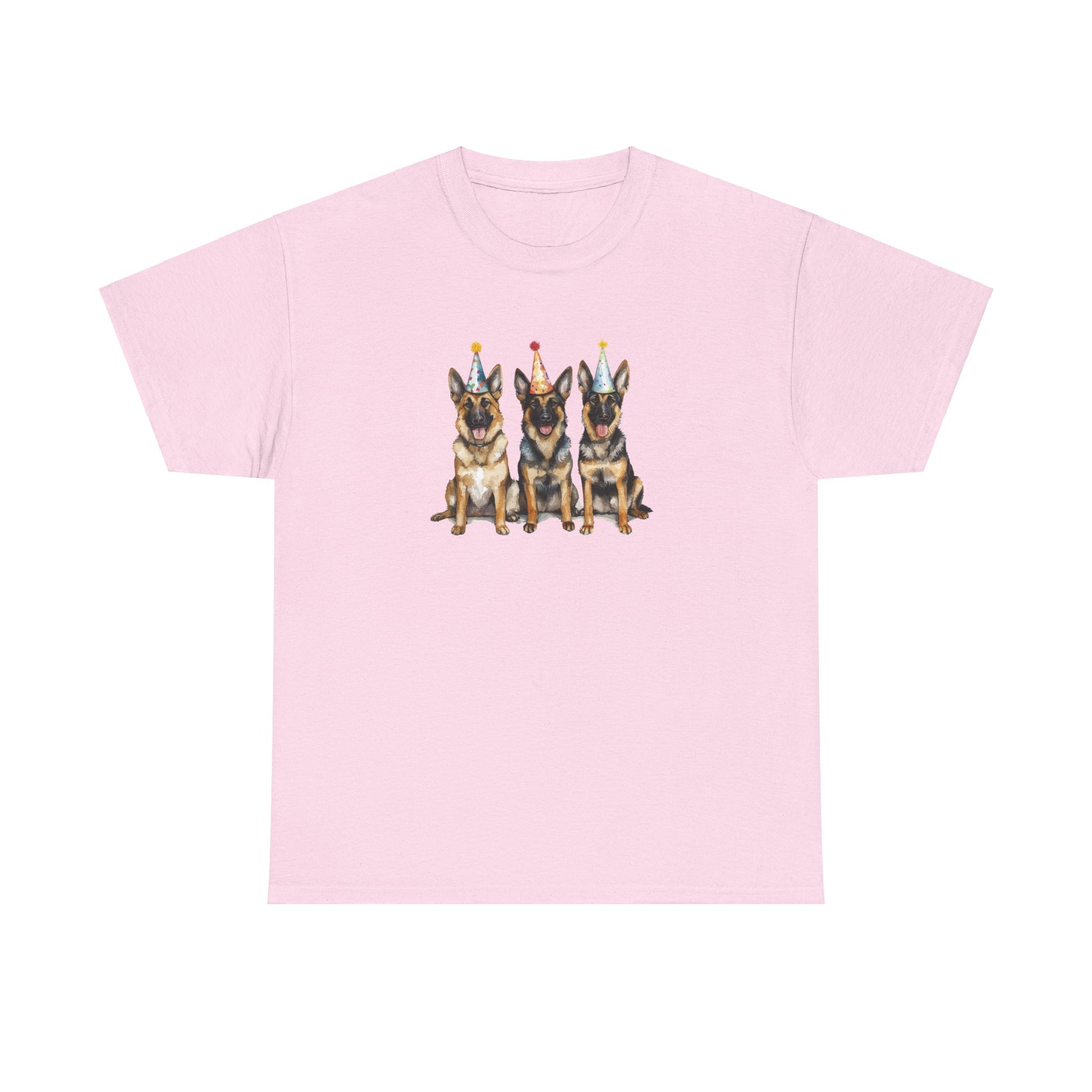 Cozy up in our sweatshirt featuring three adorable watercolor German Shepherds in festive party hats! Perfect for dog lovers, this fun and playful design adds a fun touch to any birthay outfit.