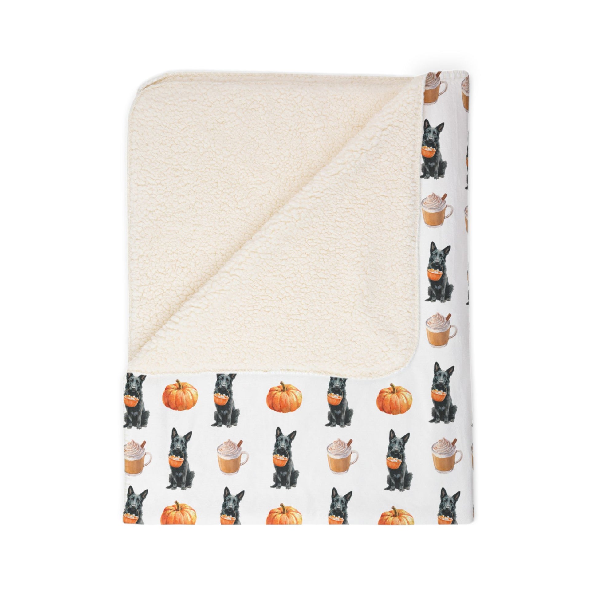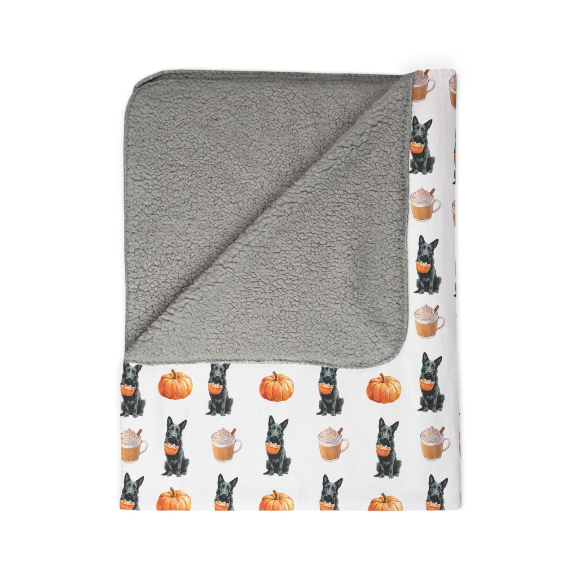 Snuggle up this fall with our Pumpkin Spice GSD Blanket! Featuring a cozy autumn design of a German Shepherd holding a pumpkin basket overflowing with candy, pumpkins, and pumpkin spice coffee topped with a cinnamon stick, this blanket is perfect for chilly evenings, pumpkin patch adventures, or just lounging with your favorite mug. Soft, warm, and full of seasonal charm, it’s a must-have for every German Shepherd lover who wants to bring the magic of fall into their home.