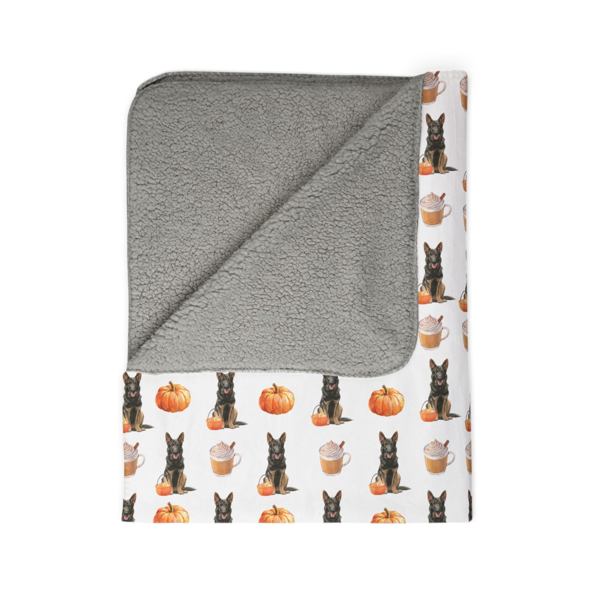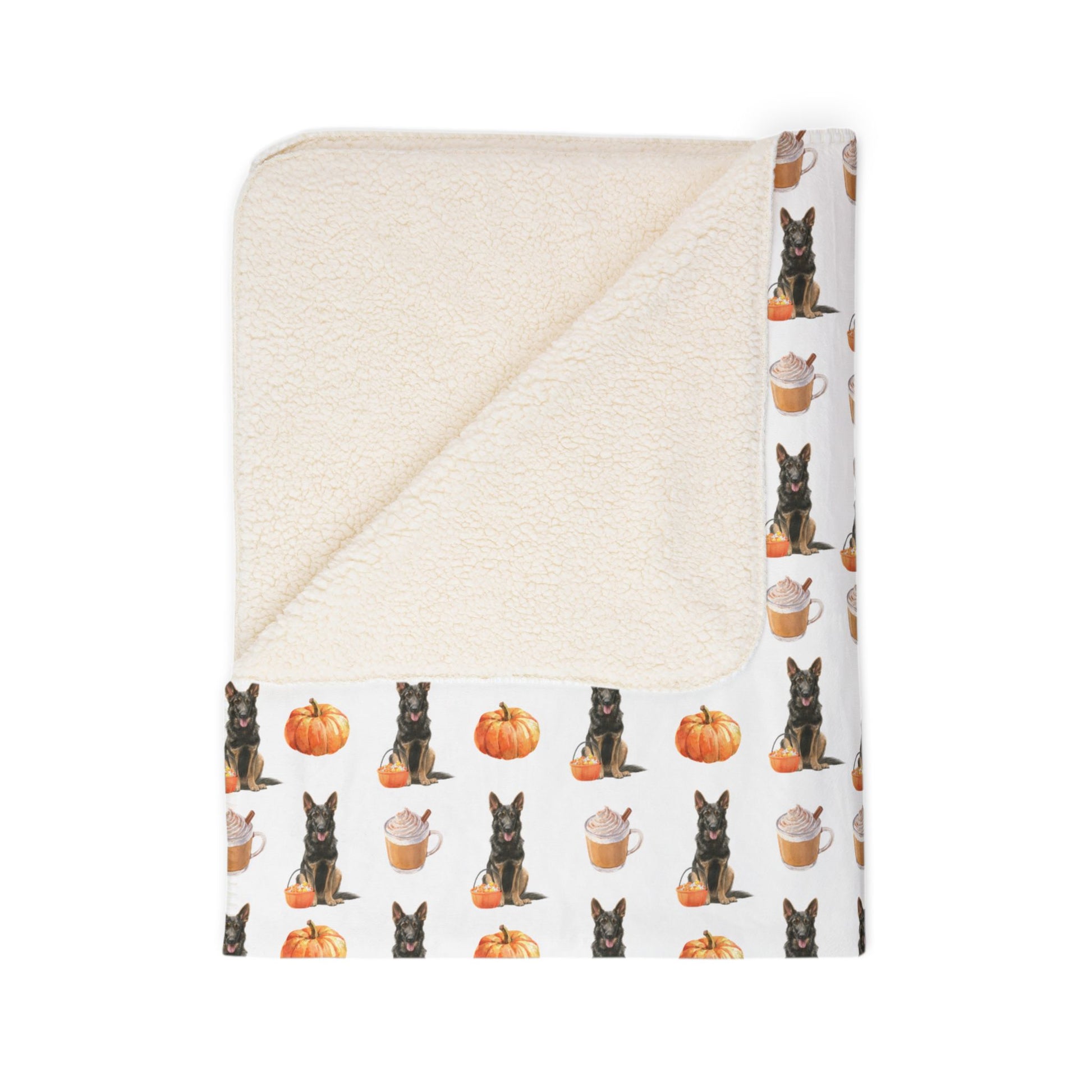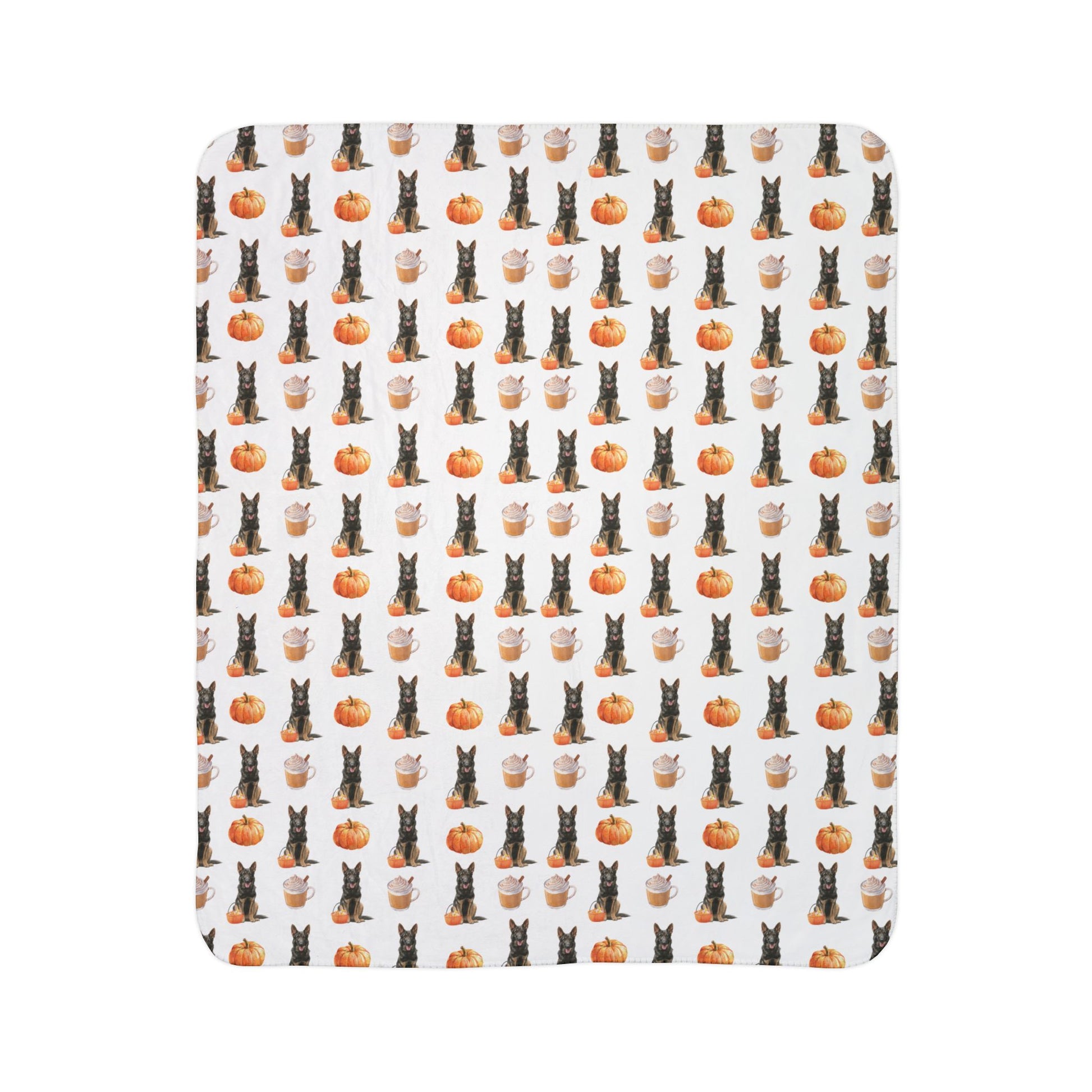 Snuggle up this fall with our Pumpkin Spice GSD Blanket! Featuring a cozy autumn design of a German Shepherd holding a pumpkin basket overflowing with candy, pumpkins, and pumpkin spice coffee topped with a cinnamon stick, this blanket is perfect for chilly evenings, pumpkin patch adventures, or just lounging with your favorite mug. Soft, warm, and full of seasonal charm, it’s a must-have for every German Shepherd lover who wants to bring the magic of fall into their home.