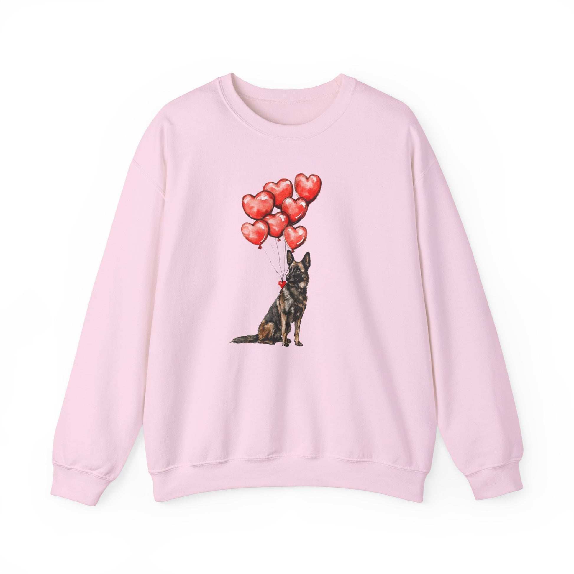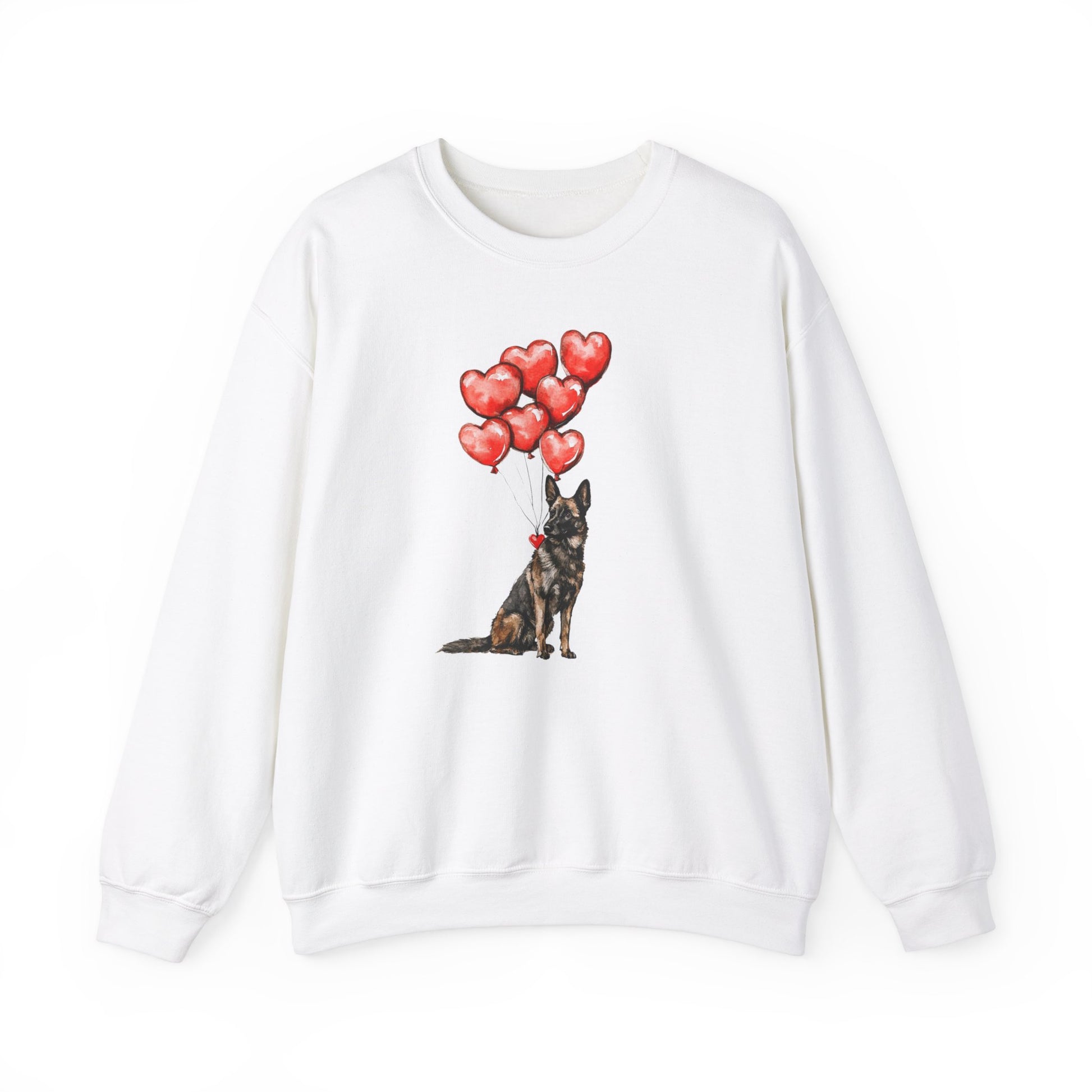 Keep it sweet and simple this Valentine's Day with our adorable sweater featuring a German Shepherd surrounded by heart-shaped balloons. This charming design captures the love and joy only a Shepherd can bring.