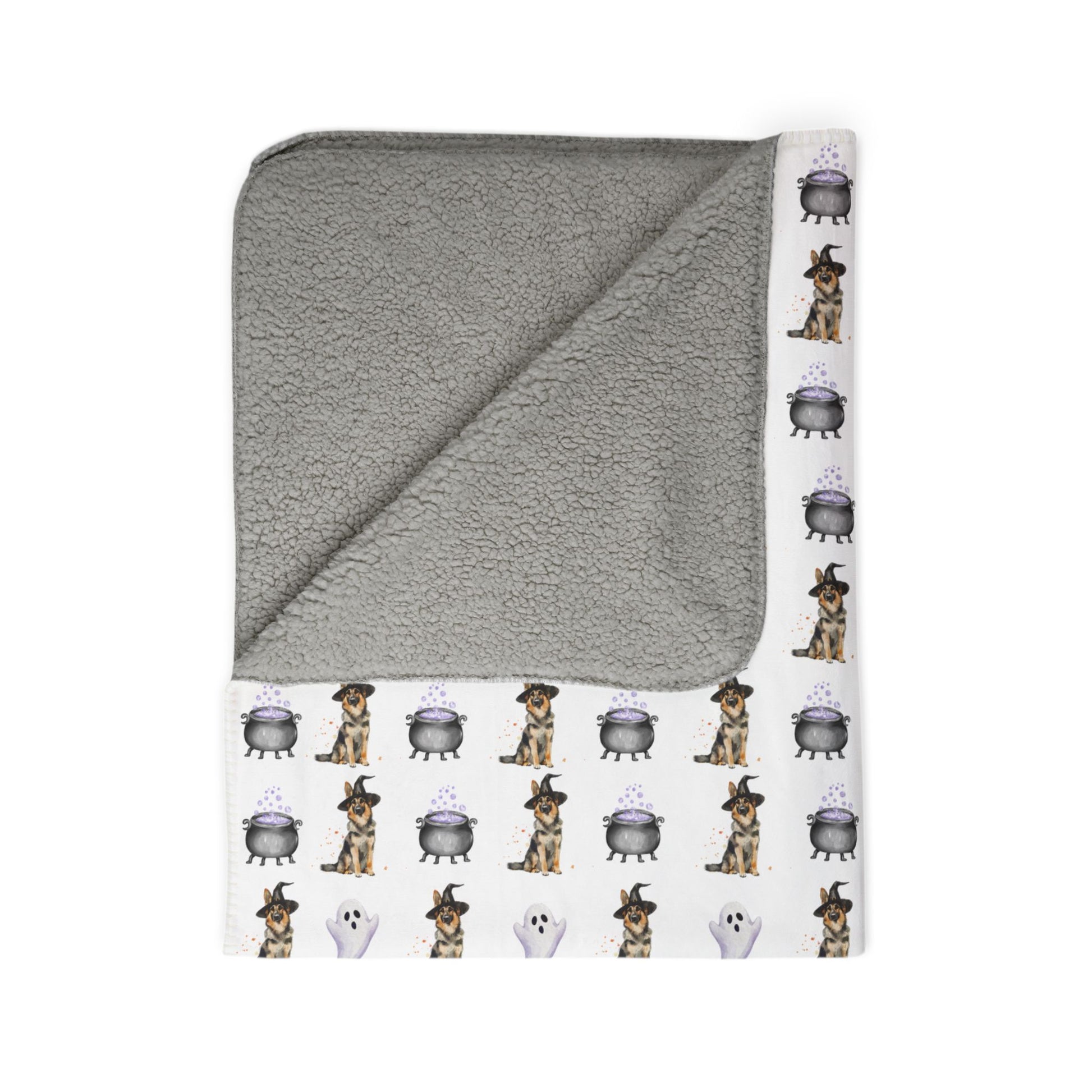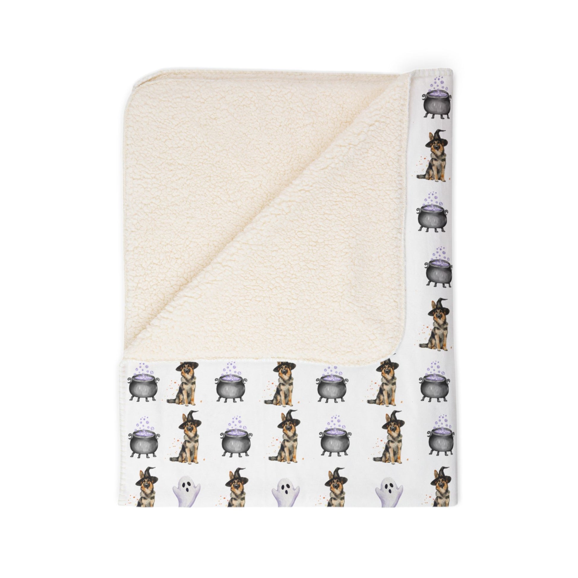 Snuggle up in spooky style with our Shepherds & Spells Blanket! Featuring German Shepherds as witches, playful ghosts, and bubbling cauldrons, this cozy blanket is the perfect mix of cute and magical. Whether you’re watching Halloween movies, sipping pumpkin spice, or adding festive charm to your home, this blanket is a must-have for every German Shepherd lover.