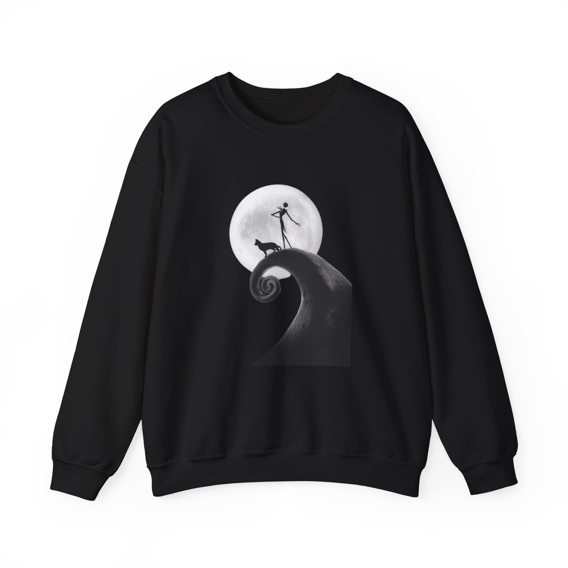 Get warm and spooky with our Nightmare Before GSD Sweater. This cozy fall favorite features Jack Skellington and a loyal German Shepherd gazing out over Halloween Town beneath a glowing moon. Perfect for chilly October nights, handing out candy, or cuddling up for a movie marathon.