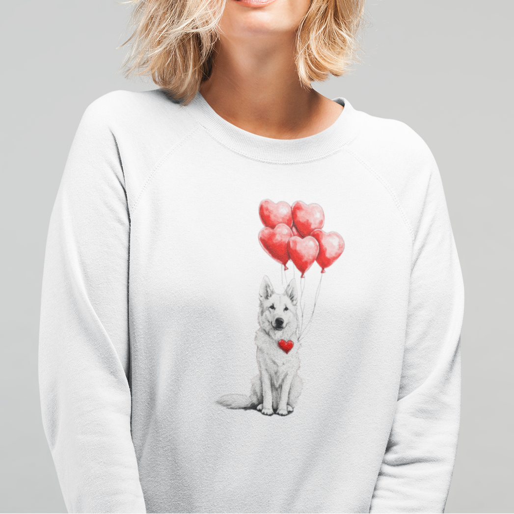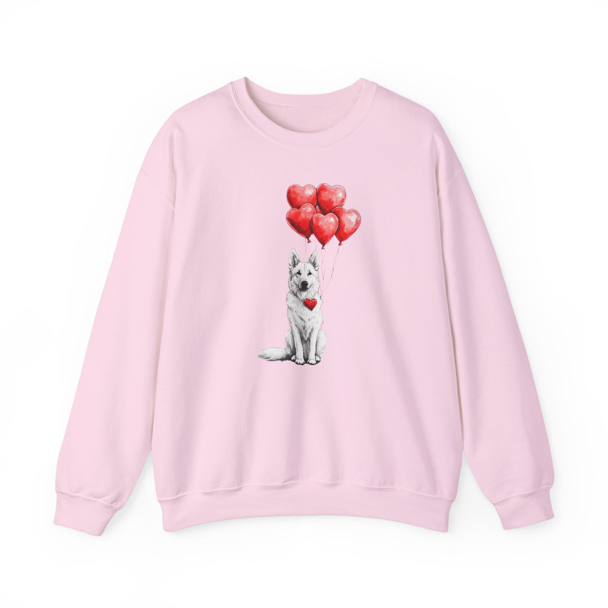Keep it sweet and simple this Valentine's Day with our adorable sweater featuring a German Shepherd surrounded by heart-shaped balloons. This charming design captures the love and joy only a Shepherd can bring
